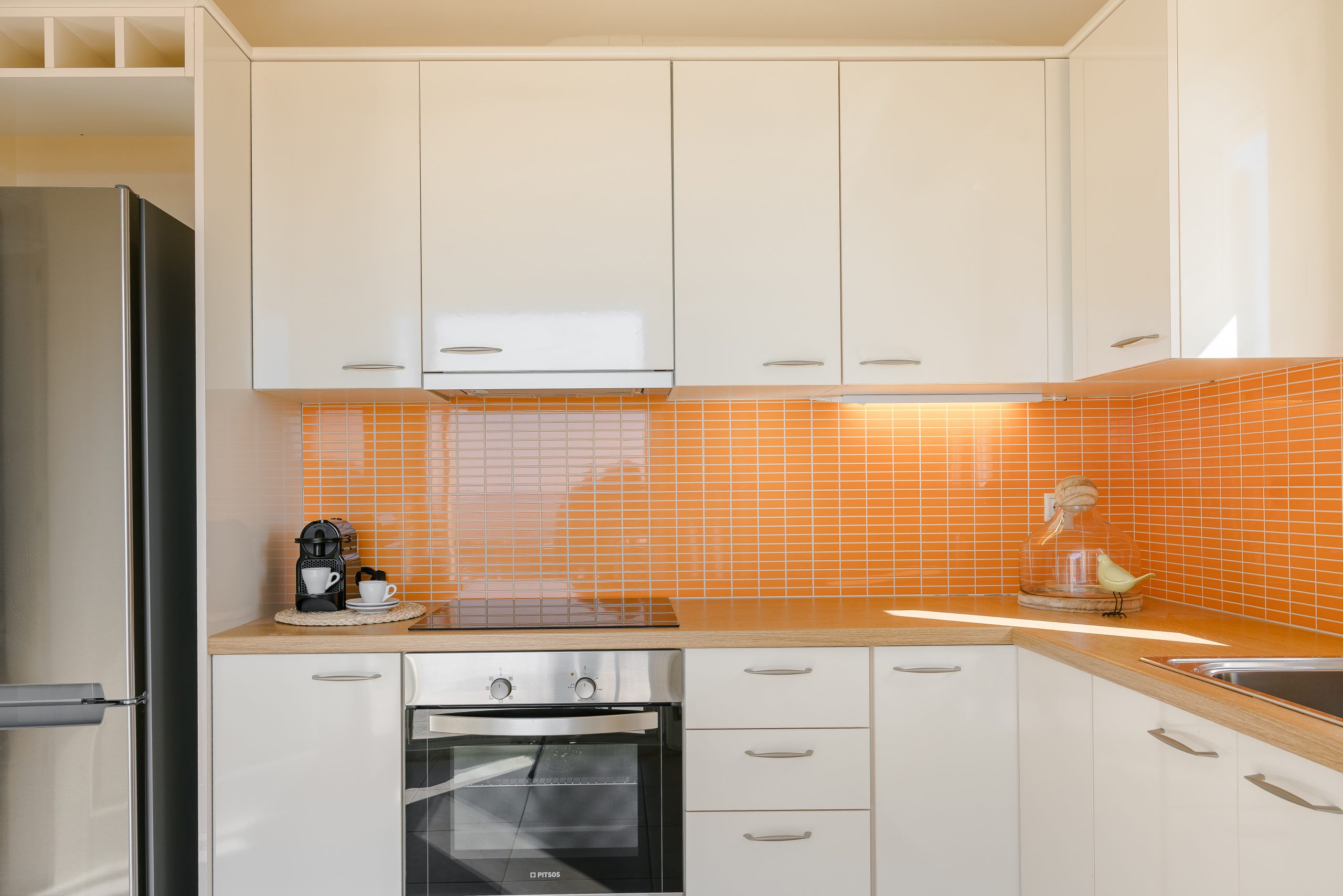 - Fully equipped kitchen with stovetop, dishwasher, washing machine, and coffee machine